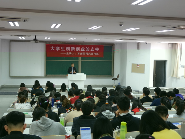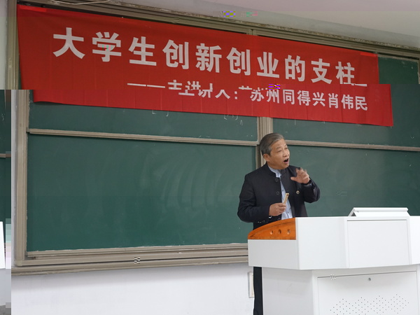 肖偉民以“大學生創新創業的支柱”為主題,從“何為創業、創業準備、創業實踐”三個層次并結合同得興23年的發展曆程和品牌效應,生動講述了自己的創業心得和成功奧秘。針對“好不過三載,活不過五年”、“拿着父母的錢盲目投入”等當今大學生的創業現象,肖偉民認為,歸根結底是由缺乏紮實的理論基本功、學業不精不深、工作沉不下心、心浮氣躁、堅持和專注度不夠等原因造成的。
