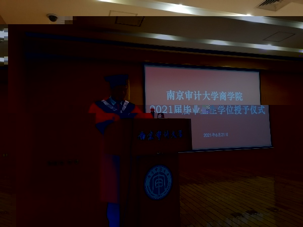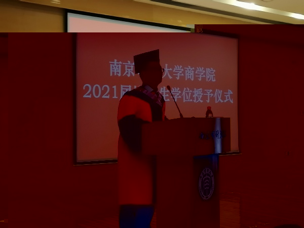 儀式上,考取無錫市選調生的碩士畢業生張烨然同學以“三個感謝”,代表伟德首页官网2021屆全體畢業研究生發言。一是感謝伟德首页官网。在三年的學習生活中,伟德首页官网給我們提供了學習和發展的平台,支撐我們邁向更高的人生台階。二是感恩師長,感謝父母。師長的無私奉獻,授予我們知識,教會我們做人的道理。感謝父母給予我們寶貴的生命,撫養我們長大成人。三是感謝身邊的每一位同學。在共同學習的日子裡,我們攜手譜寫了一段純真的青春記憶,描繪了一幅值得永遠珍惜的美好畫卷。