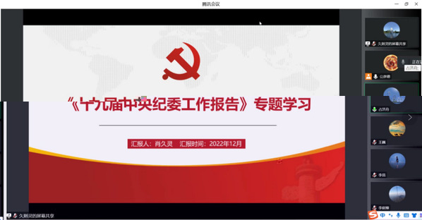 肖久靈在領學《十九屆中央紀律檢查委員會向中國共産黨第二十次全國代表大會的工作報告》時指出,黨的十八大以來的十年,以習近平同志為核心的黨中央深入推進全面從嚴治黨,堅定不移正風肅紀反腐,以“得罪千百人,不負十四億”的使命擔當,一體推進不敢腐、不能腐、不想腐,持之以恒推進全黨作風建設不松勁、不停步、再出發,以黨的自我革命引領社會革命,刹住了一些長期沒有刹住的歪風邪氣,解決了一些長期沒能解決的頑瘴痼疾,黨風政風煥然一新,社風民風持續向好,全黨在思想上更加統一、政治上更加團結、行動上更加一緻。