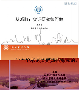 王洪青副教授以《從0到1:實證研究如何做?》為題,介紹了學術論文的基本特征和要求,以及不同類别學術論文的研究範式和研究方法。結合自身研究經曆,着重介紹了實證論文的研究思路和要求,從論文選題、理論框架構建、數據分析、結果讨論、參考文獻要求、學術論文基本格式規範以及學術論文投稿等方面分享研究心得和注意事項。