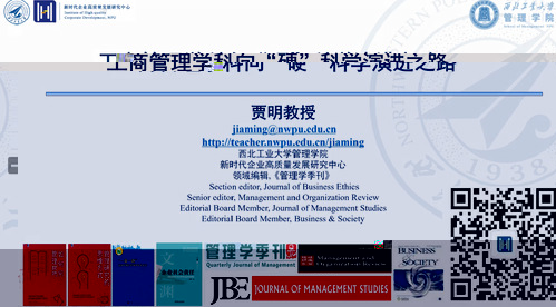 12月12日上午,西北工業大學管理學院副院長賈明教授應邀作題為“工商管理學科向硬科學演進之路”的線上學術講座,講座由伟德首页官网黨委副書記、副院長肖久靈主持,伟德首页官网30餘位師生參加。