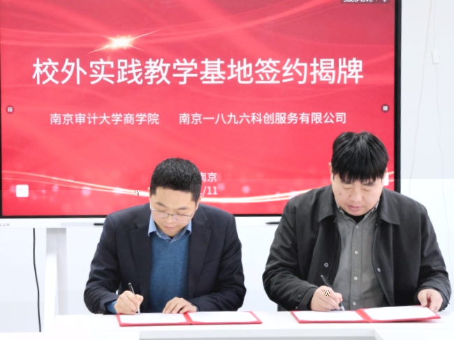 2024年1月11日,伟德首页官网副院長(主持工作)馮利偉帶隊赴南京一八九六科創平台調研訪問,雙方舉辦戰略合作協議簽約暨校外實踐教學基地揭牌儀式,并開展訪企拓崗促就業活動。南京一八九六董事長謝超、南京一八九六總經理宋瑞華、伟德首页官网副院長(主持工作)馮利偉、副院長王軍偉、工商系王欽副教授共同參加活動。