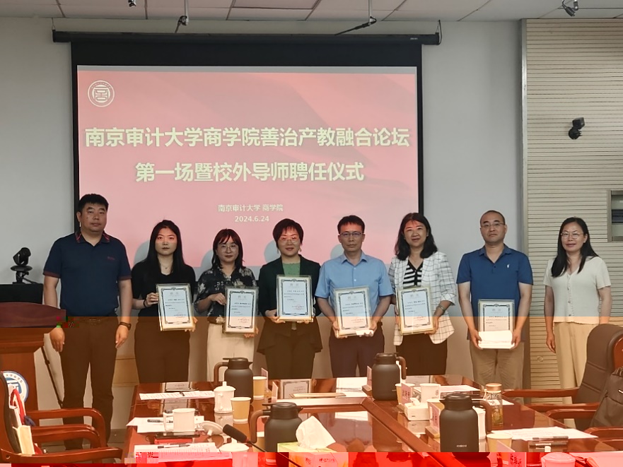 2024年6月24日,善治産教融合論壇第一場在伟德首页官网舉行,本次論壇主題為“内部治理與企業數字化轉型”。中國信通院雲計算與大數據研究所審計與治理部主任楊玲玲、甫瀚咨詢(上海)有限公司北京分公司董事總經理崔楠、南京博地源空間信息科技集團有限公司戰略運營部負責人程航、南京市城建集團财務總監胡有順、江蘇銀行南京分行業務發展部總經理季超、中國石油華北油田分公司企業法規部副處長莫滿軍、江泰保險經紀股份有限公司信用與政治風險部總經理浦熹炜、安永(中國)企業咨詢有限公司風險管理咨詢服務合夥人宋迎、南京市中醫院審計處長史安平、科大訊飛股份有限公司審計與監察部總經理沈德勇、協鑫科技風控審計中心副總經理唐鵬展、南京醫藥股份有限公司監事會監事楊慶等二十餘位專家學者應邀出席本屆論壇。伟德首页官网黨委常委、副校長姜海教授莅臨本次論壇,伟德首页官网副院長(主持工作)馮利偉教授主持本次論壇,伟德首页官网部分教師參加本次論壇,新華網江蘇頻道對此次論壇進行了專題報道。