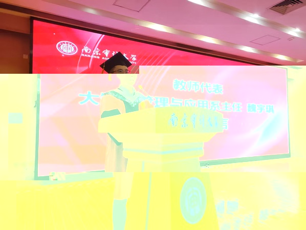 教師代表、大數據管理與應用系主任魏宇琪向在場的畢業生分享了四點期許:永葆求知熱忱、勇當創新先鋒、凝聚團隊力量、肩負時代使命,期望畢業生始終保持對新知識的渴求,将個人理想熔鑄于民族複興的偉大宏圖。