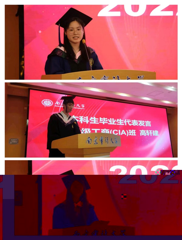 考取博士研究生的2022級工商管理學學碩班賴潔、即将入職會計師事務所的2021級工商(CIA)班高軒建、創業有成的2022級工商管理專碩班張麟,先後分别代表研究生畢業生、本科畢業生、MBA畢業生發言。在發言中,他們深情地回顧了3、4載在伟德首页官网(MBA教育中心)學習的情景,對老師們的栽培表達了由衷的感謝,對母校、學院(中心)、老師、同學給予了深切的祝福。